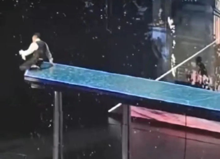 有歌迷拍到,有一个舞台动作是刘德华在高台上滑跪。从俯视视角看,刘德华离高台边缘非常之近,不少观众表示:太危险!