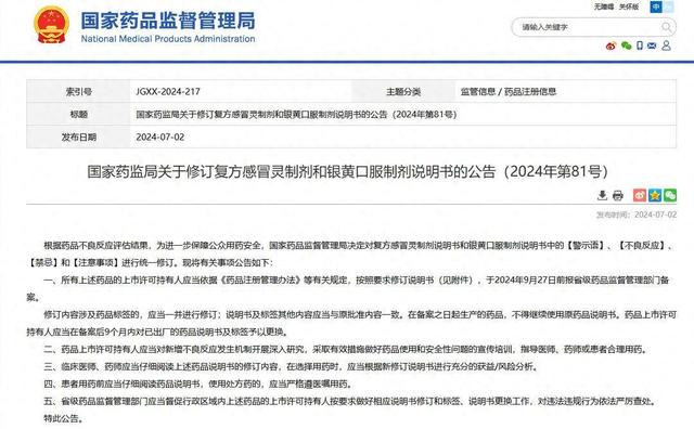 家庭常用药复方感冒灵制剂修订说明书了!划重点:服用期间不得饮酒、驾车!