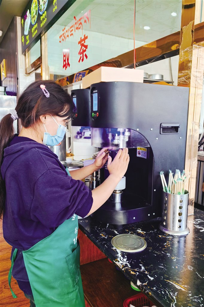 正如白女士所说,无论是大型商场,还是街头小店,越来越多的奶茶店出现在西藏的寻常巷陌。每逢周末假日,一些奶茶店外都会排起长队。“我从小就很喜欢喝酥油茶,酥油茶泡白米饭、酥油茶泡馒头是我最爱的早餐。可作为饮品,不论是酥油茶还是清茶,口感都有些单一,但我又爱喝茶,所以喜欢上口味丰富又有茶香的奶茶也不奇怪。”市民普布卓玛捧着一杯冰奶茶打趣道。