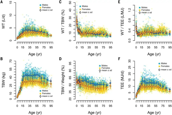 [3] Yamada, Y., Zhang, X., Henderson, M. E., Sagayama, H., Pontzer, H., Watanabe, D., ... & International Atomic Energy Agency (IAEA) Doubly Labeled Water (DLW) Database Consortium §. (2022). Variation in human water turnover associated with environmental and lifestyle factors. Science, 378(6622), 909-915.