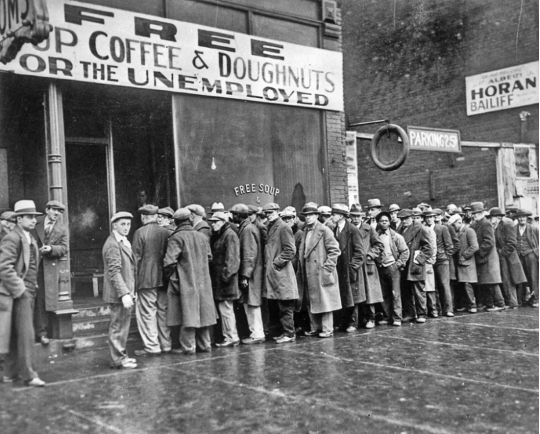 20世纪30年代的大萧条,是美国历史上最黑暗的时期之一,它持续了十年,被认为是历史上持续最长、最严重的经济萧条。这期间有1/4的人失业,股市暴跌了89%,美国GDP下降了30%,11000家银行倒闭。