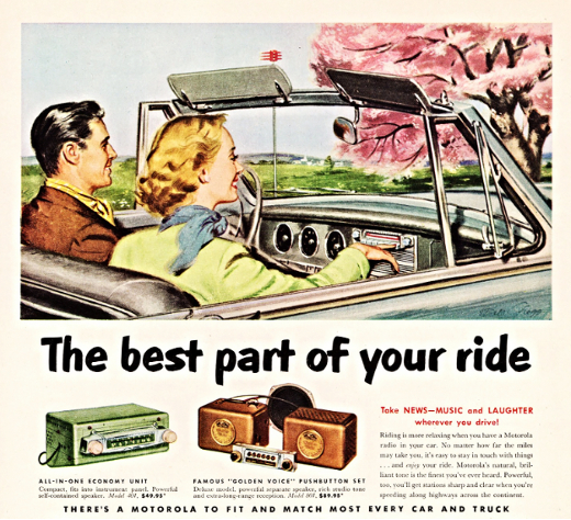 在濒临破产的时候,创始人保罗·加尔文发现了一个新商机——车载收音机。因为当时无线电广播开始流行,汽车也逐渐增多,但是现有的车载收音机却因为引擎产生静电干扰而无法普及。加尔文带领研究团队解决了静电干扰问题,推出了没有杂音的车载收音机,结果广受欢迎。到1936年,已经累计销售了150万台,像福特、克莱斯勒等大公司的汽车,一半都会装配它的收音机。