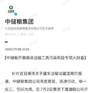 近日,中储粮集团因旗下中储粮油脂(天津)有限公司因“用刚卸完煤油的油罐车装大豆油”被广泛关注。