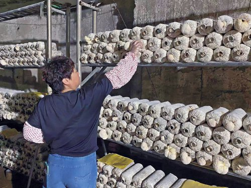 废弃防空洞也能种出“全国特质农品”?面对记者的疑惑,褚桂春爽朗地笑道:“进去看看吧,里面可是别有洞天。”进入养殖洞内,气温逐减,微湿的空气里散播着独特的菇香。在一排排育菇架上,猴头菇团团雪白伏在菌棒上,非常吸睛。住在山下南坡村的陈光萍是这里的工作人员,今天她的主要工作就是采摘猴头菇。“我们培育的这个猴头菇属于长毛的,这个菇毛长到一公分左右就可以采摘了。”陈光萍已经非常有经验了,跟记者介绍的同时,手里的活儿也不曾停下。