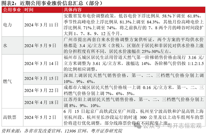 1、现象:近期居民部门的水电燃气等公用事业价格出现集中上涨
