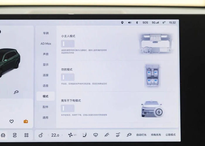 智能座舱除了座椅让我心喜之外,很多配置都恰到好处。中控屏与副驾屏的尺寸同样是15.7英寸,分辨率3K。信息功能全,就像平板电脑一样。使用上顺畅不卡顿,得益于8155芯片,而且顶配MAX版是双8155芯片,低配则是8295P。语音呼叫同样反应无延迟,还能做到大部分纯电车型能实现的所见即可说。家庭不可缺少的手机充电,配了双无线快充,最高支持60W快充。后排同样有着一个顶置15.7英寸的娱乐屏,语音操控肯定没问题,最好玩的是手势操控,这个玩乐性很高,就象之前的360体感游戏机一样,是安抚后排孩子的一大利器。