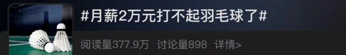 7月7日,“月薪2万元打不起羽毛球了”的话题一度冲上热搜。