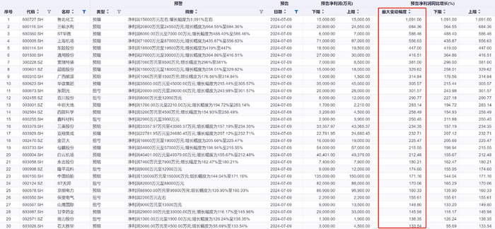 7月8日,多家上市公司披露2024年中报预告。