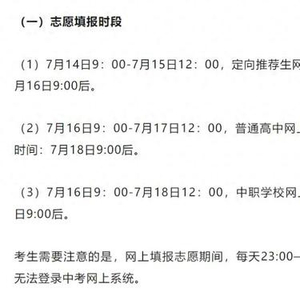 高中阶段学校录取截止时间为7月19日上午。