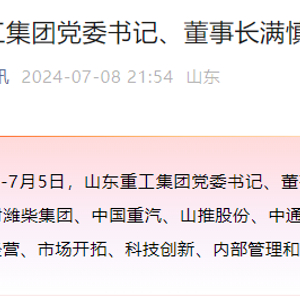 7月8日晚间,山东重工集团有限公司(以下简称山东重工集团)官方微信“山东重工资讯”发布文章称,6月30日—7月5日,山东重工集团党委书记、董事长满慎刚先后到潍坊、济南、济宁、聊城等地,对潍柴集团、中国重汽、山推股份、中通客车等权属企业开展实地调研,详细了解企业生产经营、市场开拓、科技创新、内部管理和党的建设等工作。