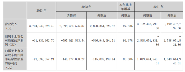 2023年是华英农业完成重整后的首个完整会计年度,也是管理层换新后的首个年度。据财报数据,2023年,华英农业畜牧业营收占比100%,实现营业收入37.05亿元,同比增长27.83%,净利润亏损3183.70万元,同比减亏94.67%;扣非净利润亏损2103.29万元,同比减亏85.50%。