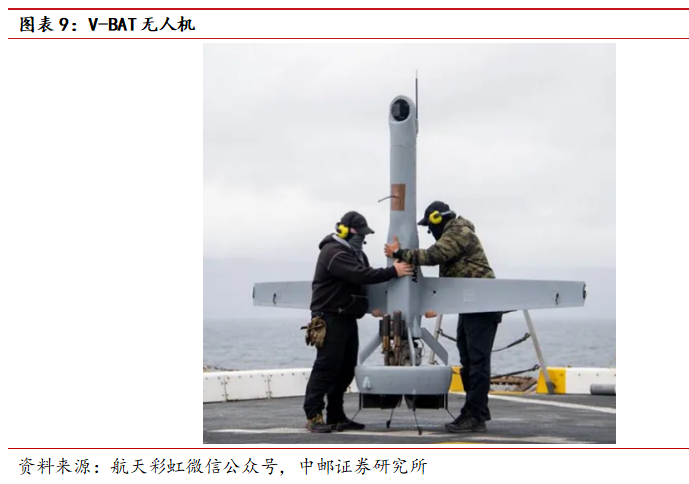 美国海岸警卫队采购V-BAT无人机,未来将部署于巡逻艇。2024年6月26日,美国海岸警卫队与圣地亚哥的承包商神盾智能(Shield AI)公司签订了一份合同,向其采购V-BAT垂直起降无人机,这些无人机将部署于海岸警卫队的巡逻舰艇上,以增强巡逻艇的态势感知能力。这份合同为不定期交付、不定期数量的固定价格合同,将持续到2029年,分为五个为期一年的订购期。V-BAT无人机空重仅56千克,最大续航时间10小时,无人机尾部为动力装置,头部为一具光电转塔。得益于垂直起降的设计,V-BAT无人机可在16平方米以内的小型场地起降,且可由单兵拆解背负,还支持2人的操作组在20分钟内完成部署,具备部署灵活的特点。