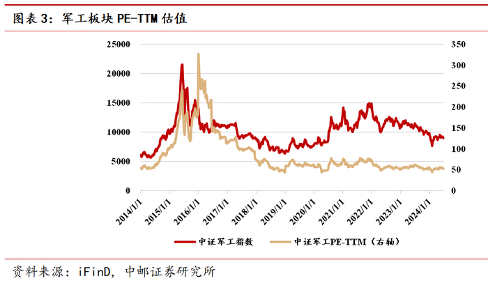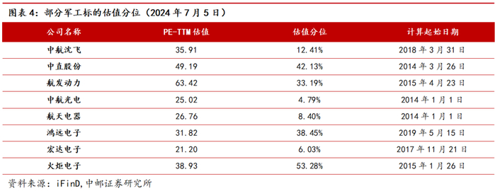 2.3 军工板块及重点标的估值水平
