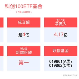科创100ETF基金(588220),场外联接(A类:019861;C类:019862)。