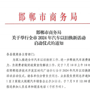邯郸市商务局关于举行全市2024年汽车以旧换新活动启动仪式的通知