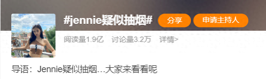 7月9日,有媒体报道,韩国知名女星Blackpink成员Jennie疑似在室内抽电子烟,引发网友关注。
