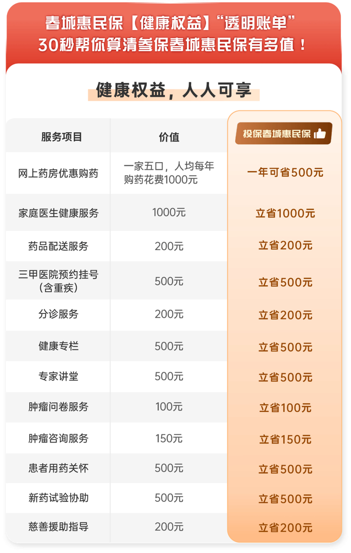 2024年度“春城惠民保”新增的健康权益也是一大亮点,12项健康权益满足参保人日常的健康管理需求,覆盖全部人群,健康人群也可以使用!