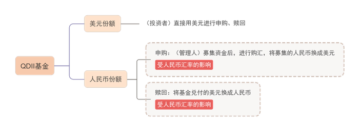 谈到汇率的影响,我们首先要知道,QDII基金分为外币份额和人民币份额。以QDII美元基金为例: