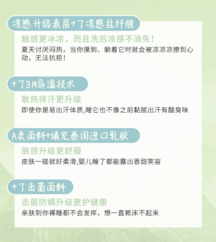 💡今年采用的是表层冷感材料+内里乳胶填充,简直就是凉感和不变形的标配~