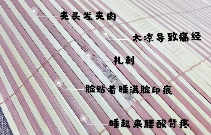 普通的硬竹席、麻将席,硬邦邦的硌得骨头都疼,尤其是竹席,睡久了之后就可能会被突然冒出来的“刺头”扎一下。