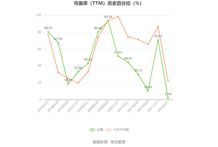 市盈率为负时,不显示当期分位数,会导致折线图中断。