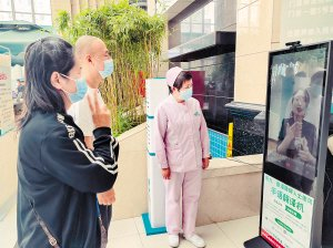 作为医生和导诊护士,以前最担心的是遇到不会写字的听障人士,因不懂手语无法交流,患者更是无法实现就医需求。现在简单了,只需在门诊大厅的智能手语翻译机上点击“呼叫手语翻译”,就能快速连接线上手语翻译老师,通过大屏幕实时帮助听障人士与医护人员交流。