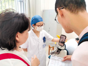 7月5日,在哈尔滨医科大学附属第二医院门诊,于洋主任和导诊护士向记者演示了这台科技“神器”的使用方法,并讲述了帮助一对听障夫妇就诊的故事。