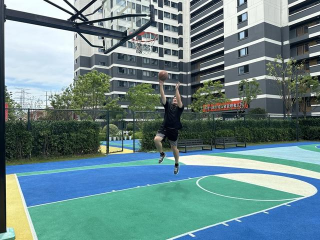 租户吴涛在社区的公共球场运动