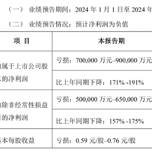 业绩预告显示,万科预计上半年净利润亏损70亿元至90亿元,同比下降171%至191%;扣非后净亏损50亿~65亿元,同比下降157%至175%。