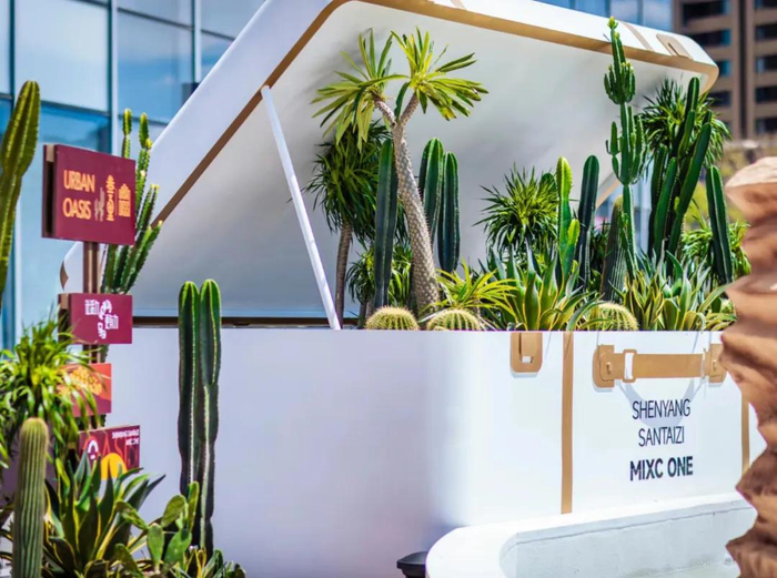 作为沈阳三台子万象汇开业后的首个室外街区,“叁三里”街区以“沙漠绿洲”和“都市”为主要元素,打造沈阳首个2000㎡漫氧绿洲主题街区。在一步一景中,逃离城市喧嚣,栖息精神绿洲。