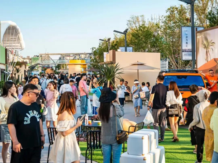 因此,越来越多盒子+街区的商业mall持续涌现,展现个性化的场景服务。近期,不少购物中心打造出崭新的市集街区,以不同的风格魅力成为话题焦点。