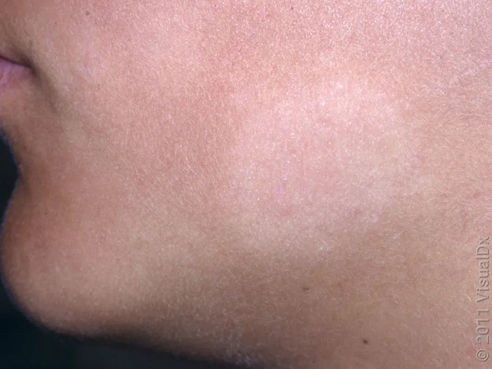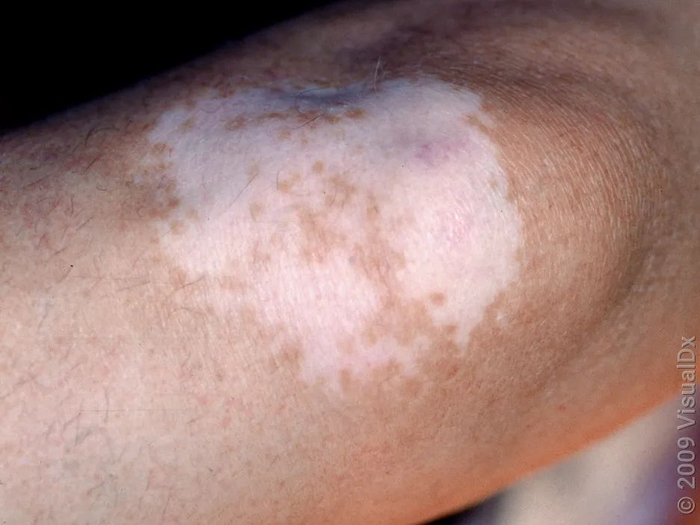 通常在出生时或出生后不久出现,表现为局限性的淡白斑,边缘呈锯齿状,随身体发育缓慢扩大。而花斑癣通常是夏季多汗时出现,且皮疹边缘不呈锯齿状的表现。