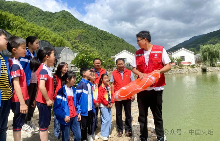 7月8日,金寨县全军乡关工委邀请假期中的孩子沉浸式体验“溺水”救援。
