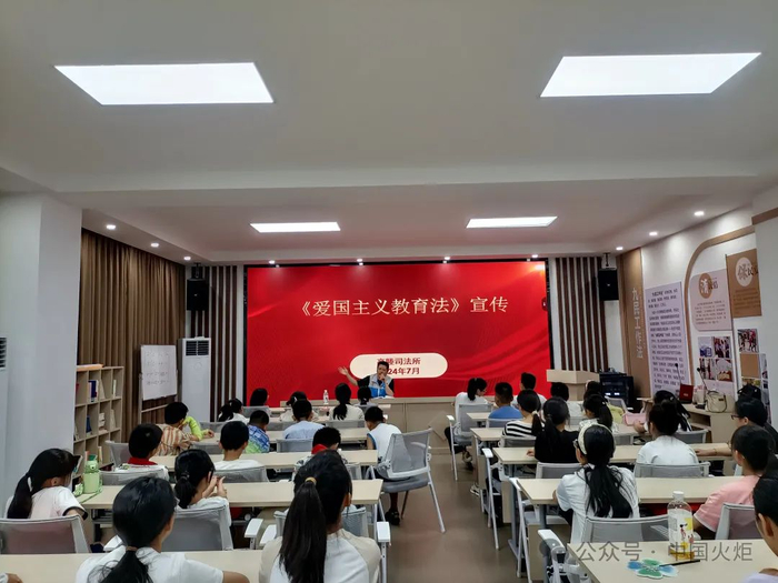 7月9日,宜兴市高塍镇桃园社区关工委开展“法治关爱 护航成长”法治教育活动,特邀高塍司法所普法员濮剑翼为学生宣讲《中华人民共和国爱国主义教育法》。