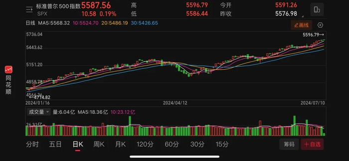 对降息的押注推高了股市价格。鲍威尔讲话后,标准普尔500指数及纳斯达克指数再创收盘新高,道琼斯工业平均指数先升后降。其中,标准普尔500指数收盘报5576点,连续第六日上涨,为今年1月以来最长升势。
