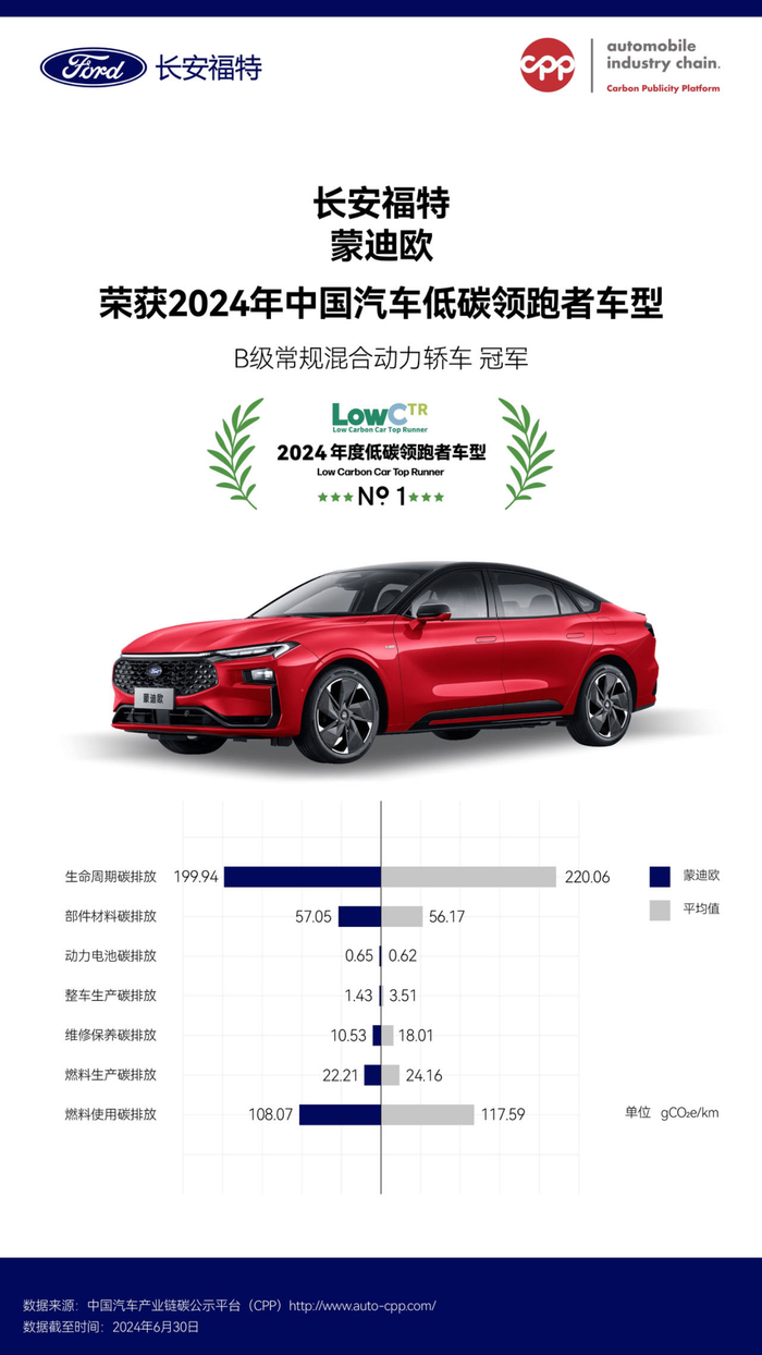 蒙迪欧混动版获评“2024年度低碳领跑者车型”
