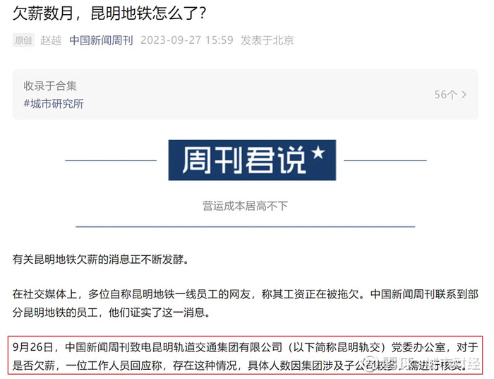 这不是问题的关键,问题的关键是,昆明地铁居然在获得了这么多财政补贴后,工资依旧发不出来。