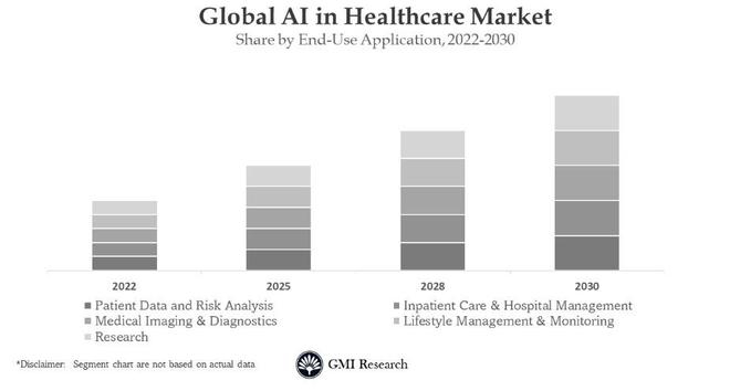 GMI Research最新研究报告显示,2022年融合AI技术的医疗保健市场价值仅仅约为104亿美元,预计2030年有望达到1899亿美元,在此期间的年复合增速(CAGR)高达43.7%。GMI Research表示,在分析极其复发的医疗数据时,AI往往能够以更短的时间和更低的成本执行任务,从而大幅优化患者、医生和医院管理人员之间的联系;并且该机构预计AI有望全面应用于医学成像与快速诊断、药物发现、医疗手术辅助机器人、基因级别的精准医疗、药物模拟筛选以及蛋白质结构预测等领域,大幅缩减产品创新周期、全面提高现代医学的精准率以及在同样的时间内覆盖更大范围的患者。