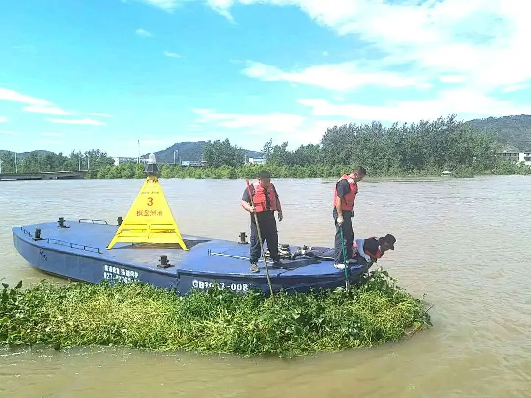 洪水过境,江面草渣流木比比皆是,刚清除完航标附近的草渣,还来不及休息,一眨眼间钢缆上又被挂满了,为船舶安全航行造成了极大风险。长江蕲州航道处党支部闻汛而动,组织职工奋战护航保畅一线,谱写一曲保标保畅的壮歌。