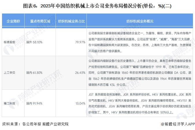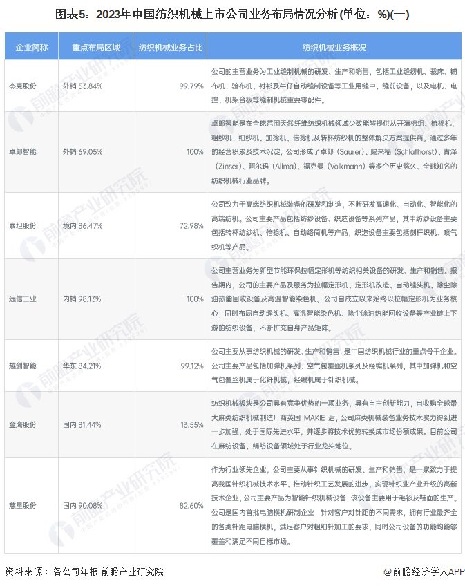 5、中国纺织机械行业企业布局