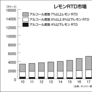 进入新世纪以来,在消费热潮刺激下,各大酒饮企业抓住机会,纷纷加码推出RTD柠檬沙瓦,意欲拯救日本长期低迷的啤酒市场。