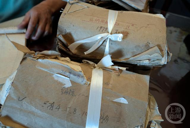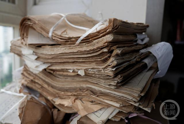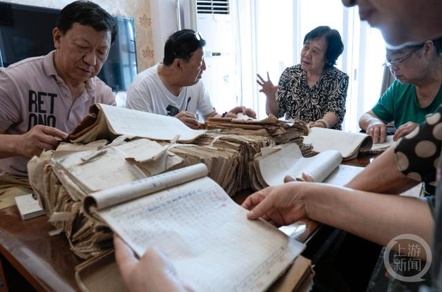 7月1日,重庆市九龙坡区郭重智家里,一摞摞老账本摆放在桌子上,泛黄的扉页上写着年份,全是上世纪七八十年代的老本子,有些账页已经翻烂。