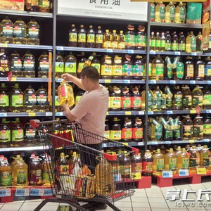 7月10日,市民刘女士在芙蓉区大润发超市的油类产品区徘徊许久。“我选食用油一般都看性价比,一桶五六十元的比较实惠。”最后,她将两桶价格60元左右的食用油放进购物车。