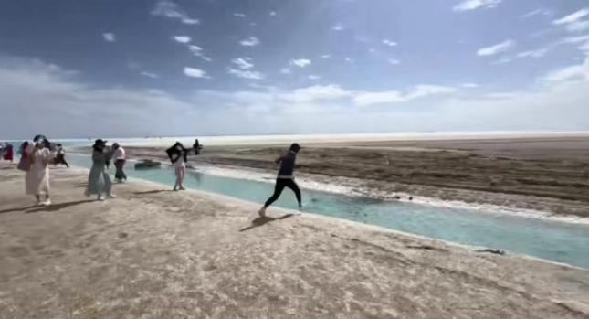 公开资料显示,东台吉乃尔湖位于柴达木盆地,为硫酸镁亚型盐湖,因湖水矿物质浓度变化,形成不同的特色景观,吸引大量游客慕名而来,享有“东方马尔代夫”的美誉,也是不少游客西北旅游时的网红打卡地。