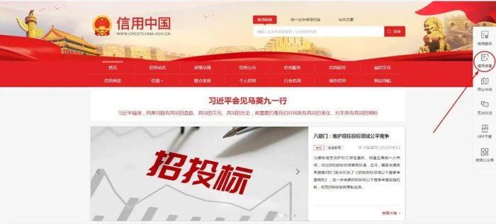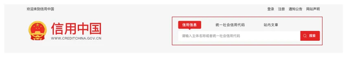 1.在网站首页右上角输入主体名称或者统一社会信用代码,并点击“搜索”,找到主体。