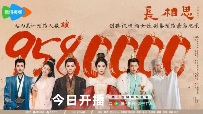 在7月8日,《长相思2》首播之后,便引发不俗的热度。不仅腾讯视频站内热度突破28000,进入腾讯视频必看俱乐部,同时,也打破了腾讯视频2024年弹幕互动量最快破1000万纪录。