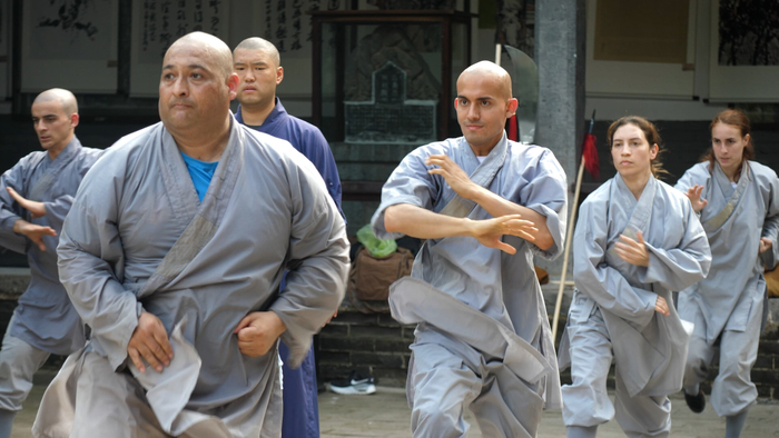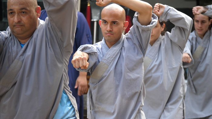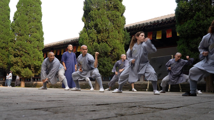 7月11日,距离2024全球少林考功总决赛还有两天时间。在嵩山少林书画院,来自阿根廷的少林弟子正在练习少林小炮拳和春秋大刀。