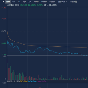 7月12日,贵金属板块高开后快速下挫,山东黄金领跌其他成分股,截至午间收盘,山东黄金放量大跌5.82%,成交额14.41亿元,报27.99元/股。