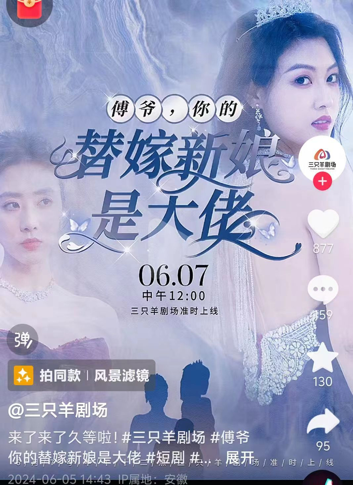 此外,薇娅所在的谦寻也入局短剧。今年“618”,谦寻旗下的蜜蜂惊喜社推出《蜂总的37日独宠》短剧,将短剧融入直播带货。
