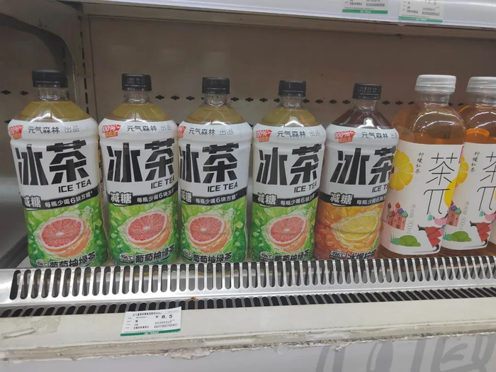某便利店店主表示,从2022年开始,大瓶装销量明显好于往年,其中1L左右的饮料卖得最好。而随着购买大瓶装饮料消费者的增多,他也随之调整了进货比例:“往年,大瓶装饮料大概占总体进货量的三分之一,但去年已经和小瓶装饮料对半开了。从销量上来看,1L左右的茶饮类饮料销量要明显高于大瓶的碳酸饮料、果汁。”
